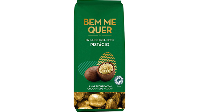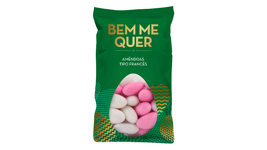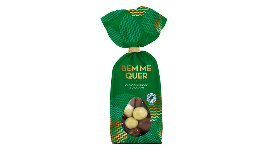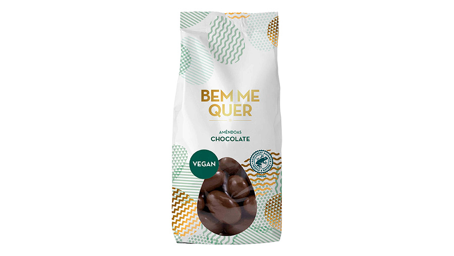 A marca Bem Me Quer também tem opções vegan, como estas amêndoas da Páscoa, que excluem qualquer ingrediente de origem animal sem comprometer o sabor.