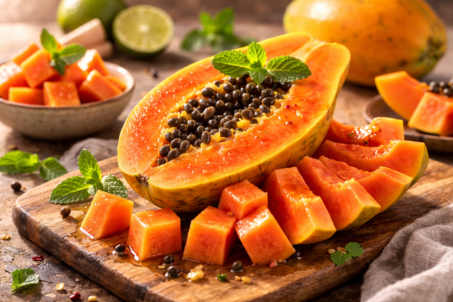 Há muitas maneiras incluir o mamão na sua dieta e de o consumir, nomeadamente ao natural, em sumos, batidos, saladas e em gelados.