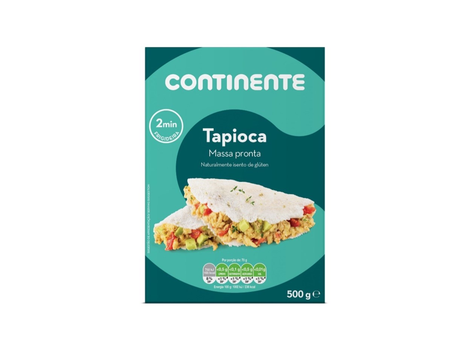 Naturalmente isenta de glúten, a tapioca hidratada Continente chega até si numa embalagem de 500 gramas, no formato de massa pronta. Em apenas 2 minutos na frigideira consegue preparar a base para a confeção das suas receitas preferidas.