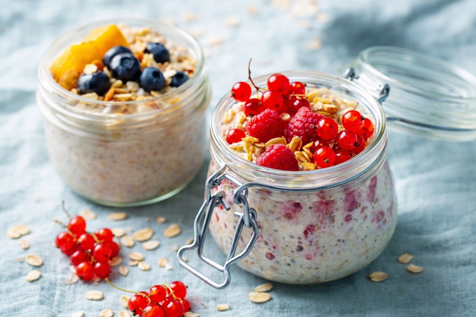 As papas de aveia preparadas de véspera são uma excelente opção para manhãs mais apressadas e atarefadas. A aveia é rica em hidratos de carbono complexos e em fibra. Além disso, apresenta um conteúdo proteico elevado, distinguindo-se de outros cereais pelo seu elevado teor em arginina, um aminoácido com importância na cicatrização.