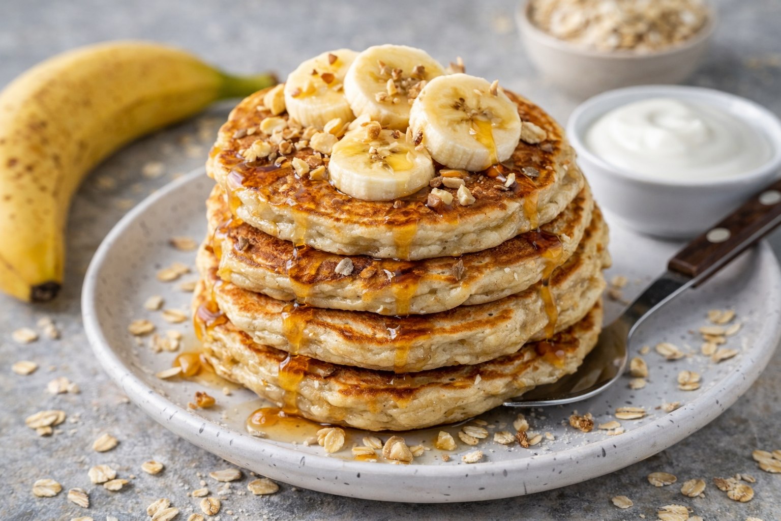 Inspire-se com estas receitas de panquecas. Em alternativa, e para ser ainda mais rápido, use um preparado de panquecas de aveia sem glúten sem açúcares adicionados.
