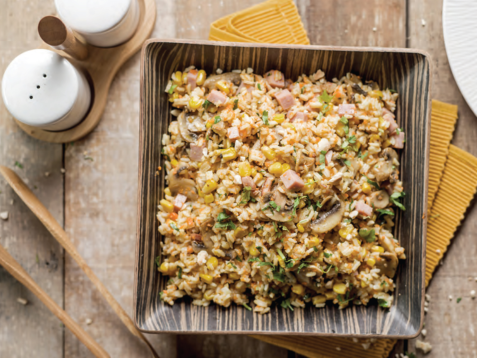 - Arroz – serve de base para pratos quentes, saladas frias, arroz salteado ou reaproveitamento de sobras.