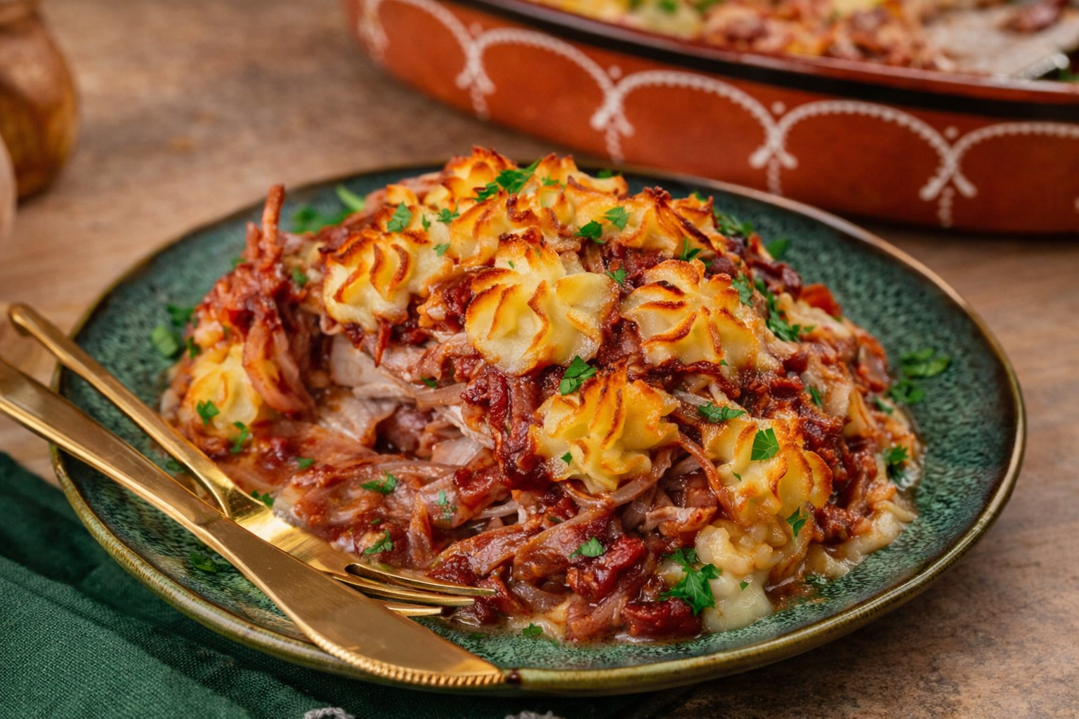 O Bacalhau à Transmontana é uma receita tradicional rica em sabor e história, típica da região de Trás-os-Montes. Este prato combina o bacalhau em lascas com batatas às rodelas, cebolas caramelizadas e pimentos, tudo regado com um generoso fio de azeite de qualidade e levado ao forno até atingir uma textura suculenta e dourada. Muitas vezes acompanhado de azeitonas e salsa fresca, é uma verdadeira celebração da gastronomia portuguesa, onde os ingredientes simples se transformam numa experiência inesquecível. Ideal para reunir a família à mesa e celebrar o melhor da cozinha regional.