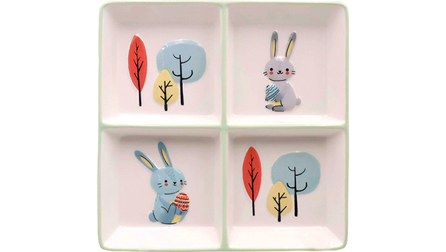 Para completar a decoração e trazer um toque divertido à mesa, sirva as entradas em loiça temática, também da KASA. Pode escolher um pequeno prato de aperitivos em forma de coelho ou ainda um prato com quatro divisórias, ideal para frutos secos ou amêndoas.