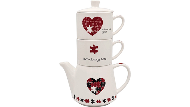 Neste dia, use um serviço de mesa especial. Espreite este prato em forma de coração da KASA ou este conjunto de duas canecas e bule da linha Puzzle da Kasa.
