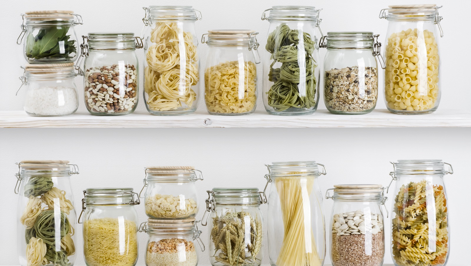 Outra dica de arrumação da despensa é utilizar recipientes transparentes para alimentos que já foram abertos. Por exemplo, arroz, massas, farinhas, biscoitos. Dessa forma, ficará mais fácil encontrar o que procura e também saber quando está na hora de repor os alimentos.
