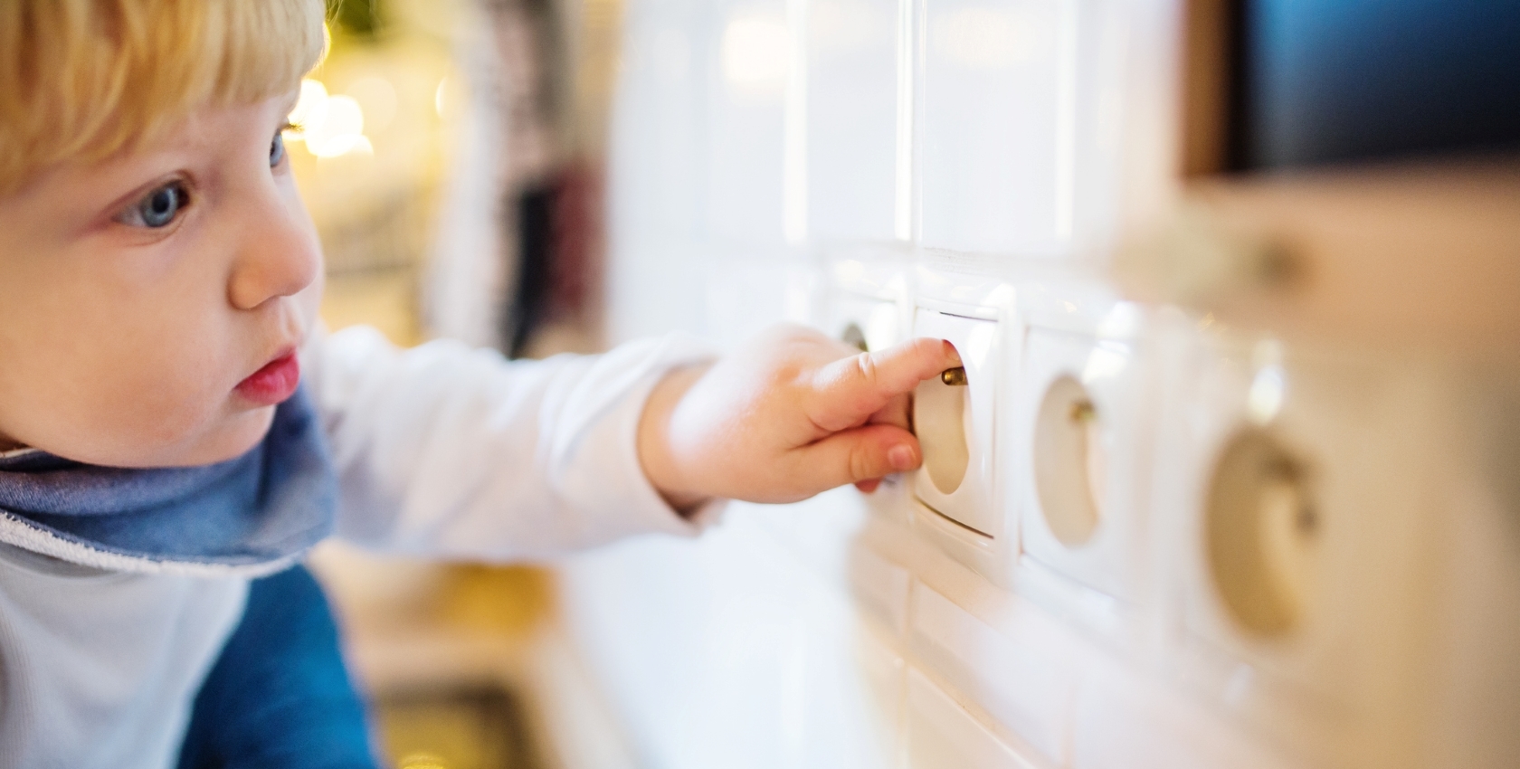 Usar protetores de tomadas é uma das regras incontornáveis da segurança doméstica infantil, impedindo que as crianças coloquem lá os dedos. Procure, também, esconder os fios elétricos expostos da vista dos mais pequenos.