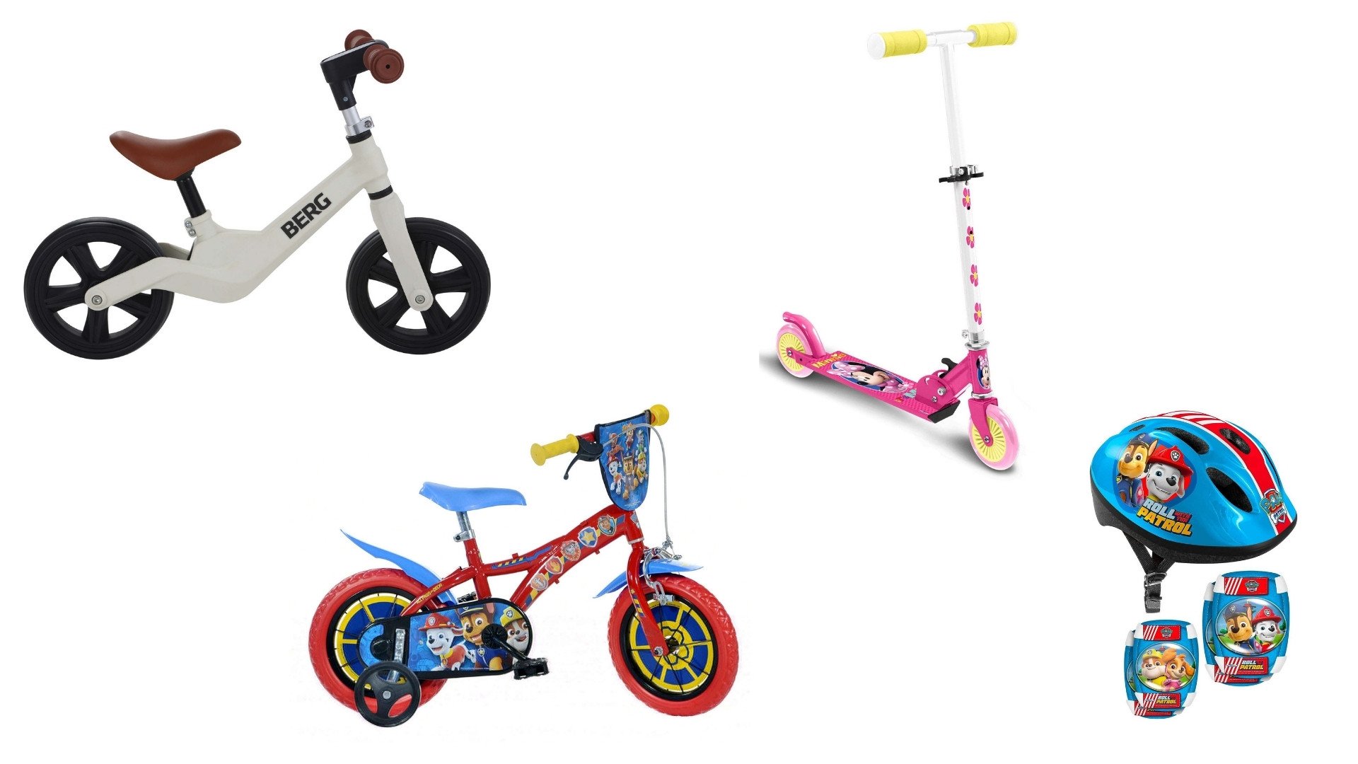 Uma bicicleta é outra prenda que faz sucesso! A BERG tem vários modelos, como a bicicleta de aprendizagem. Complete a prenda com um capacete seguro e confortável.