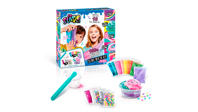 Para quem adora brincar com as mãos, o slime é a escolha perfeita. Este Pack 10 Slimes Mix'In traz tudo o que precisa: pó de slime, enfeites, taça para misturar, recipientes e uma espátula. Assim, a criança fica horas e horas entretida a fazer o seu próprio slime. Pode personalizar e experimentar diferentes combinações ou optar por uma versão simples.