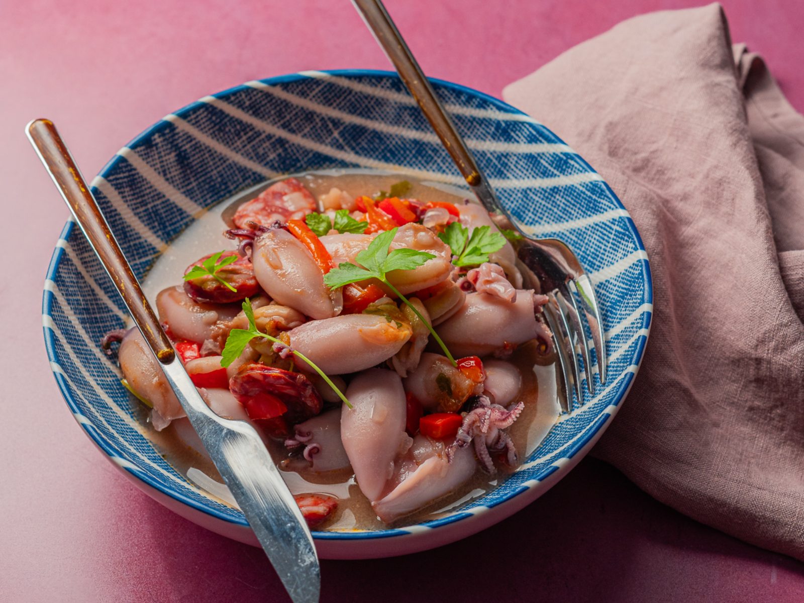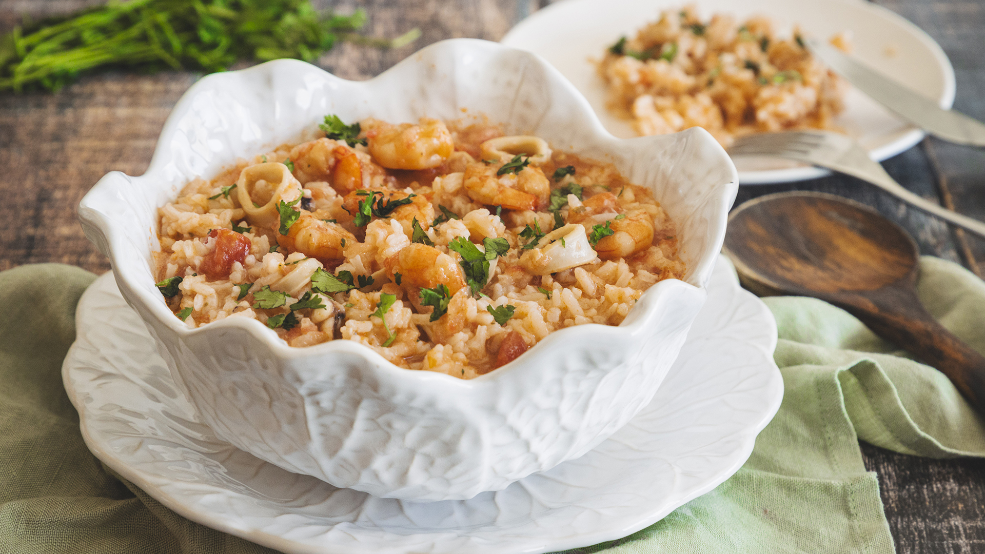 Introduza de novo as lulas, deixe ferver e salpique com coentros picados. Sirva de imediato o arroz de lulas.