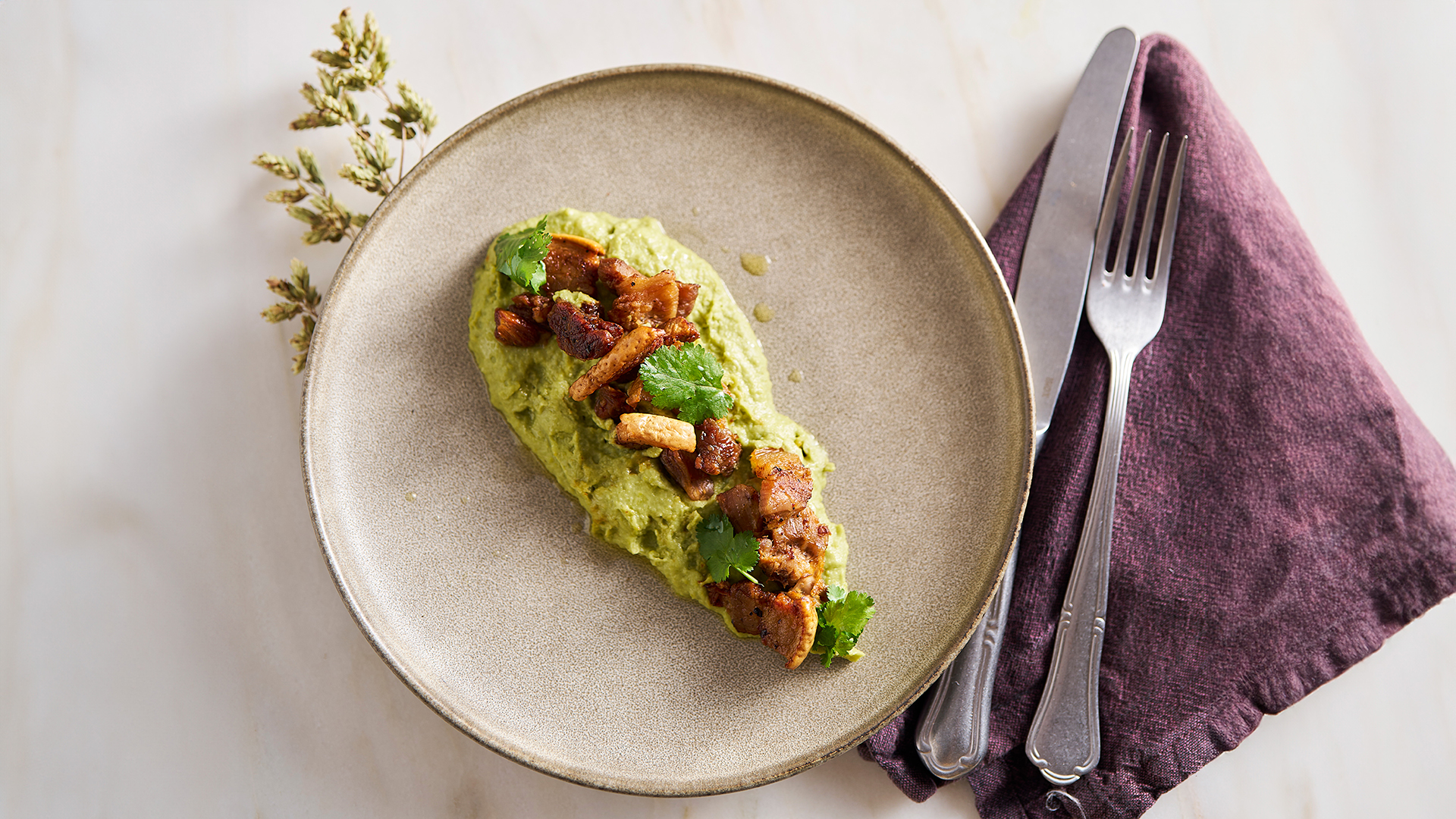 Para o molho, misture o iogurte com sumo de lima, sal e pimenta.