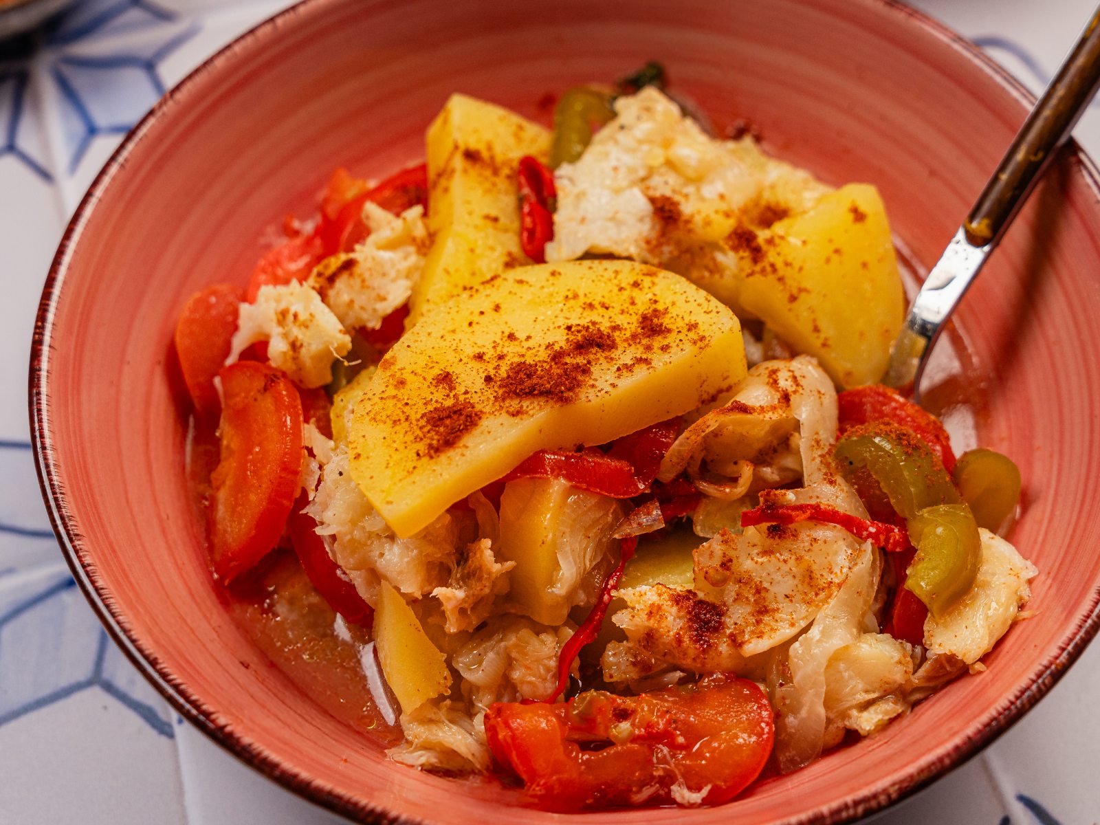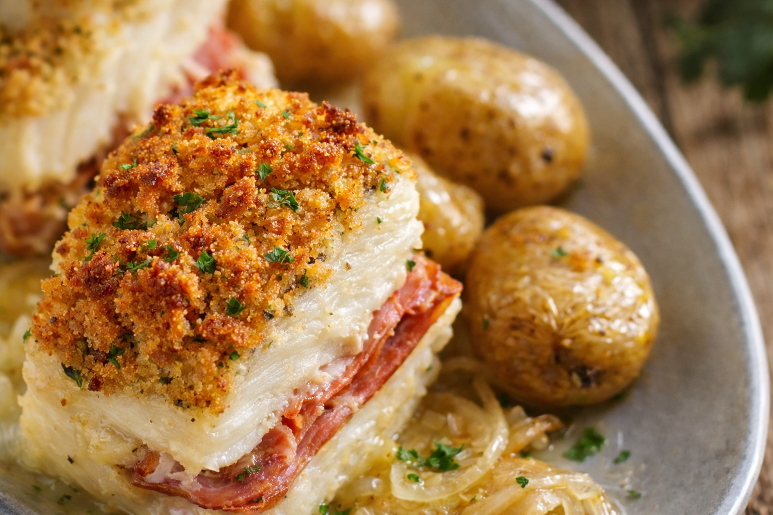 Sirva o bacalhau à transmontana decorado com salsa picada.