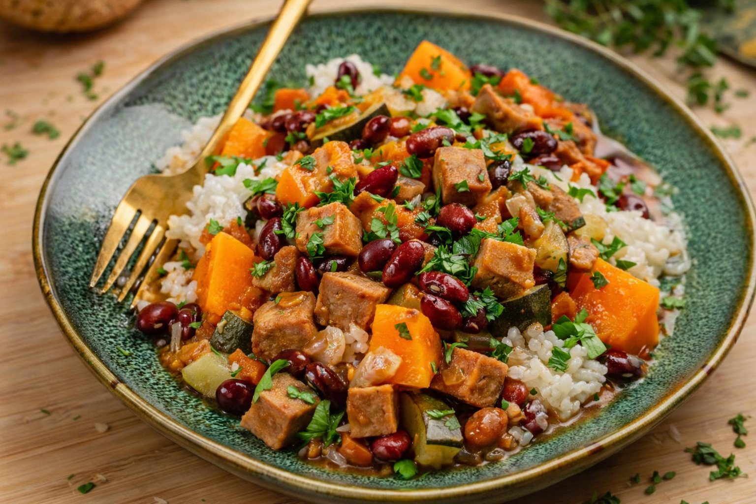 Tempere o seitan com sal e pimenta. Numa grelha bem quente com um pouco de azeite cozinhe os bifes. Marque bem dos dois lados.