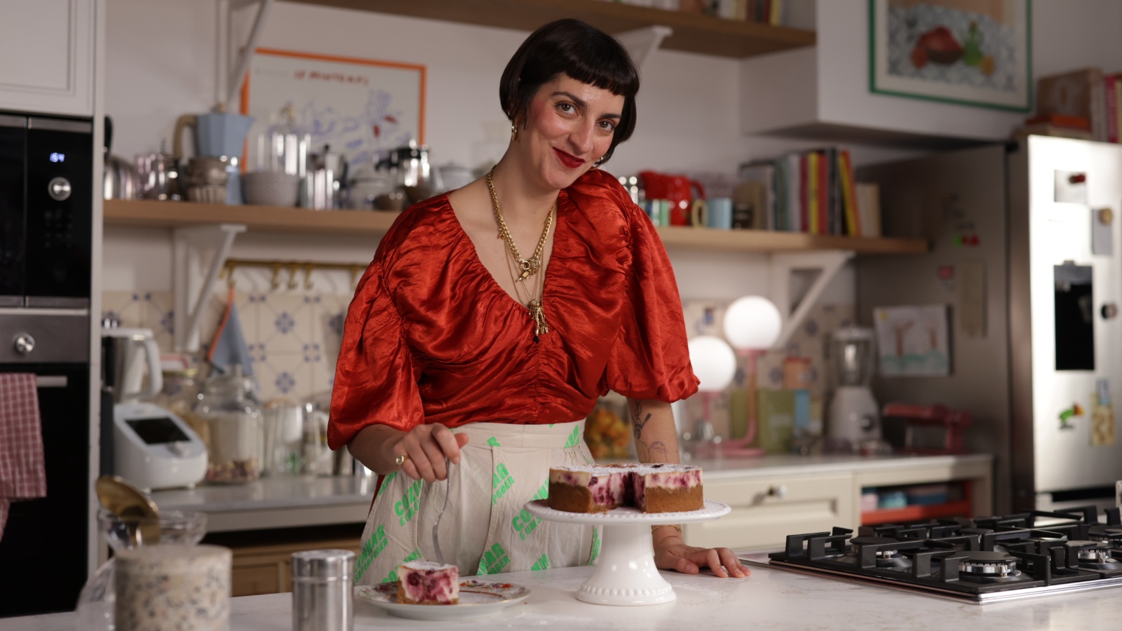 Sirva o clafoutis de cereja e decore com açúcar em pó.