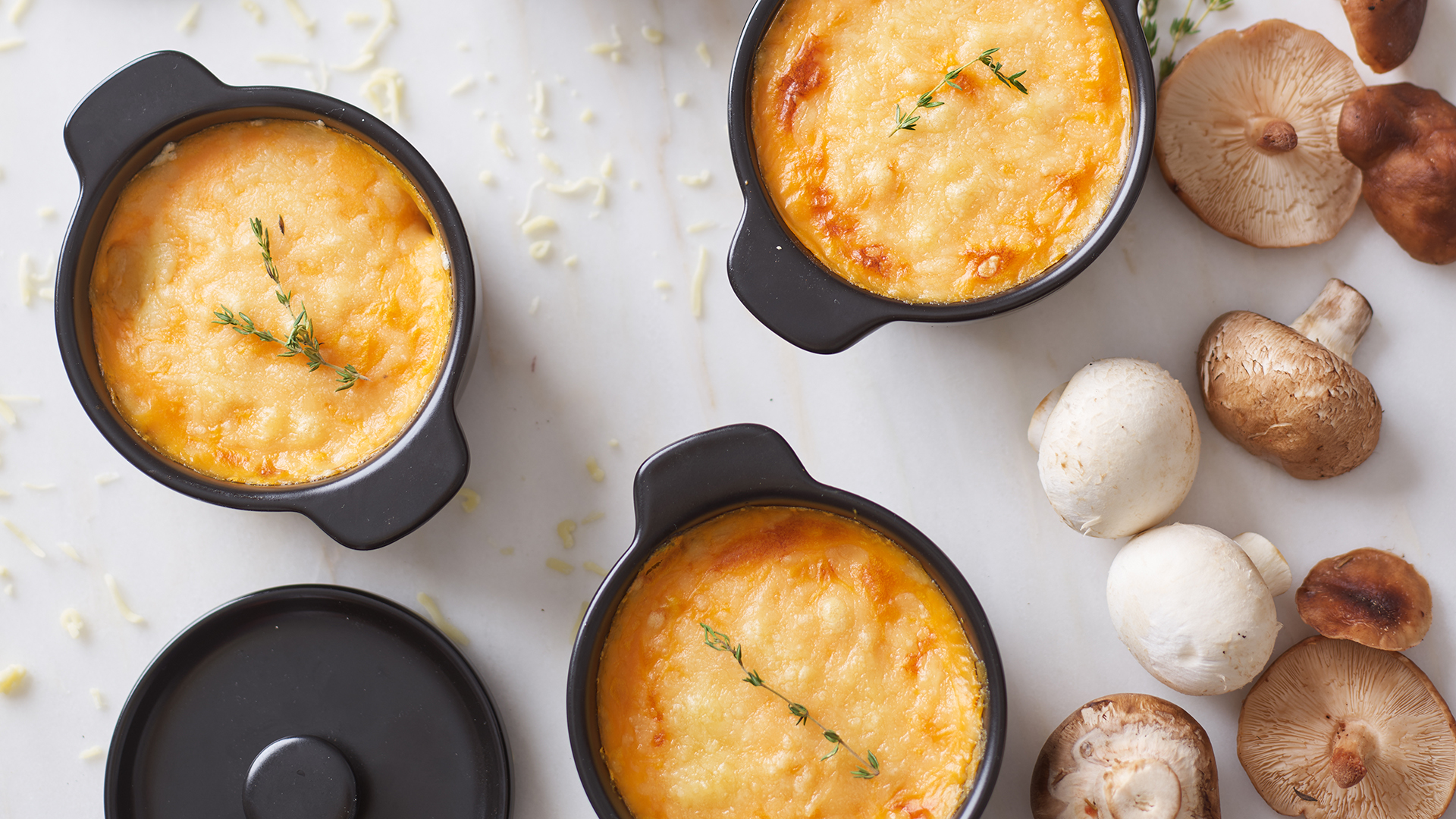 Com o forno previamente aquecido a 180ºC, leve os cogumelos ao forno durante alguns minutos, até o queijo estar completamente derretido e retire. Decore com folhas de manjericão e sirva de imediato.