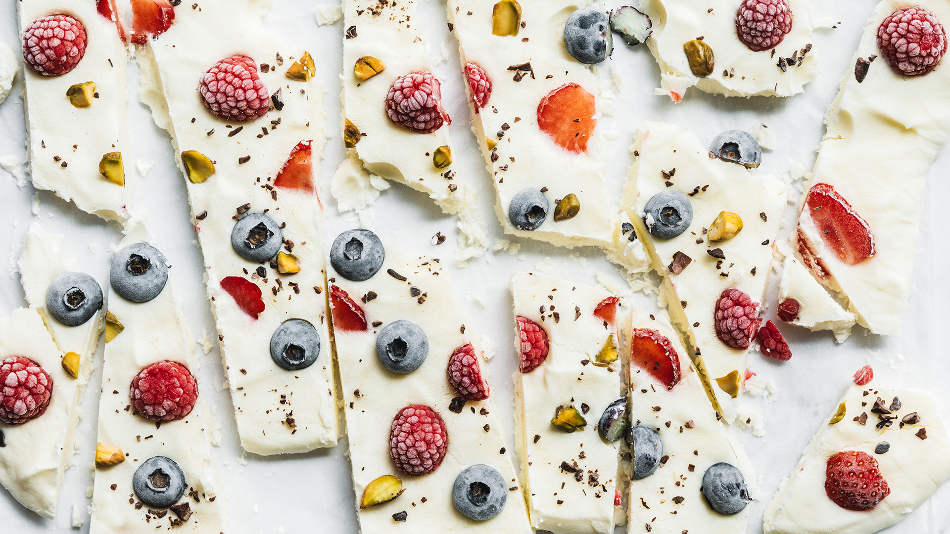 Em cada crepe, barre 1 colher de sopa de manteiga de amendoim e cacau. Decore-os com pedaços de manga, fatias de pêssego, morangos fatiados e mirtilos e dobre-os em forma de triângulo ou leque.