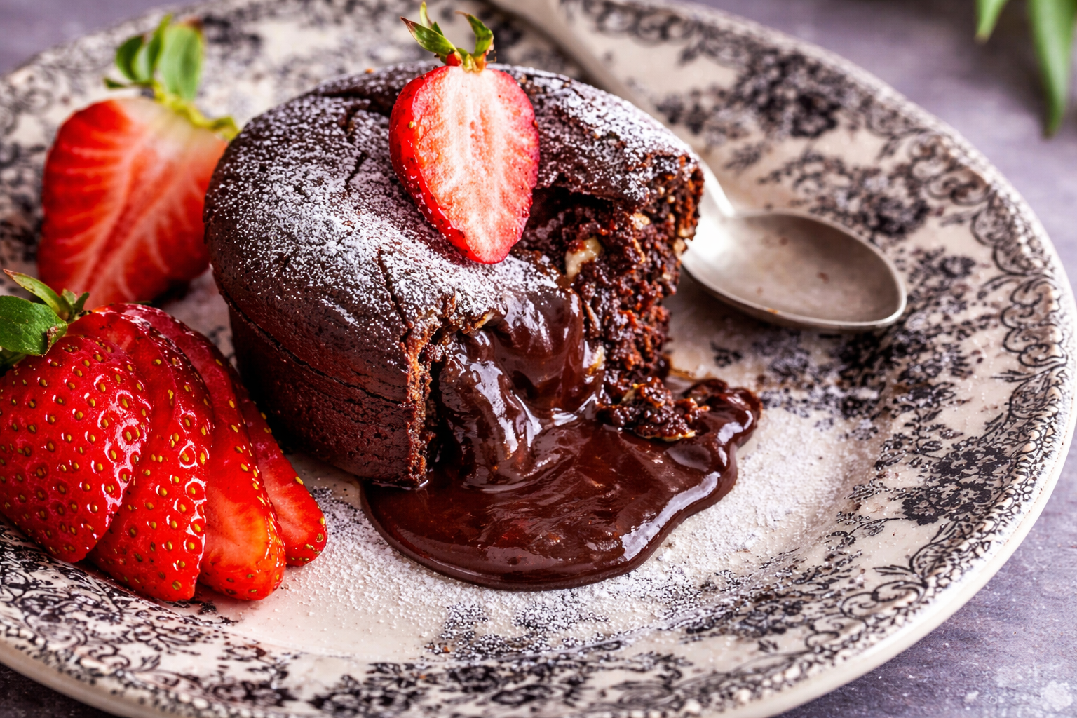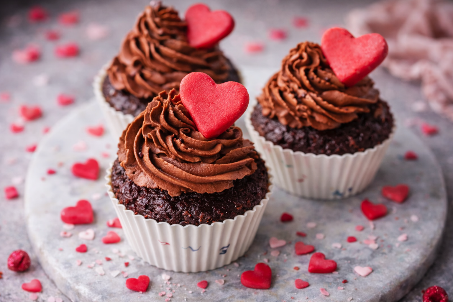 Decore os cupcakes com esta cobertura de chocolate e por fim os corações de maçapão.