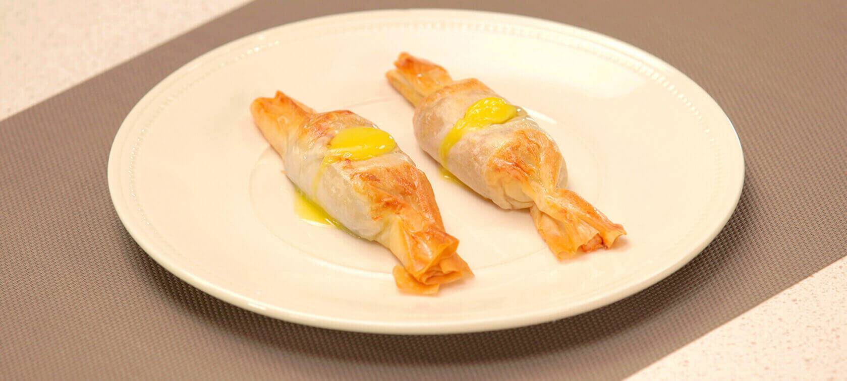 Levar ao forno, aquecido a 180º durante cerca de 20 minutos. Quando os embrulhos começarem a apresentar um tom dourado, retirar do forno e fazer um orifício, onde se irão colocar os ovos de codorniz.