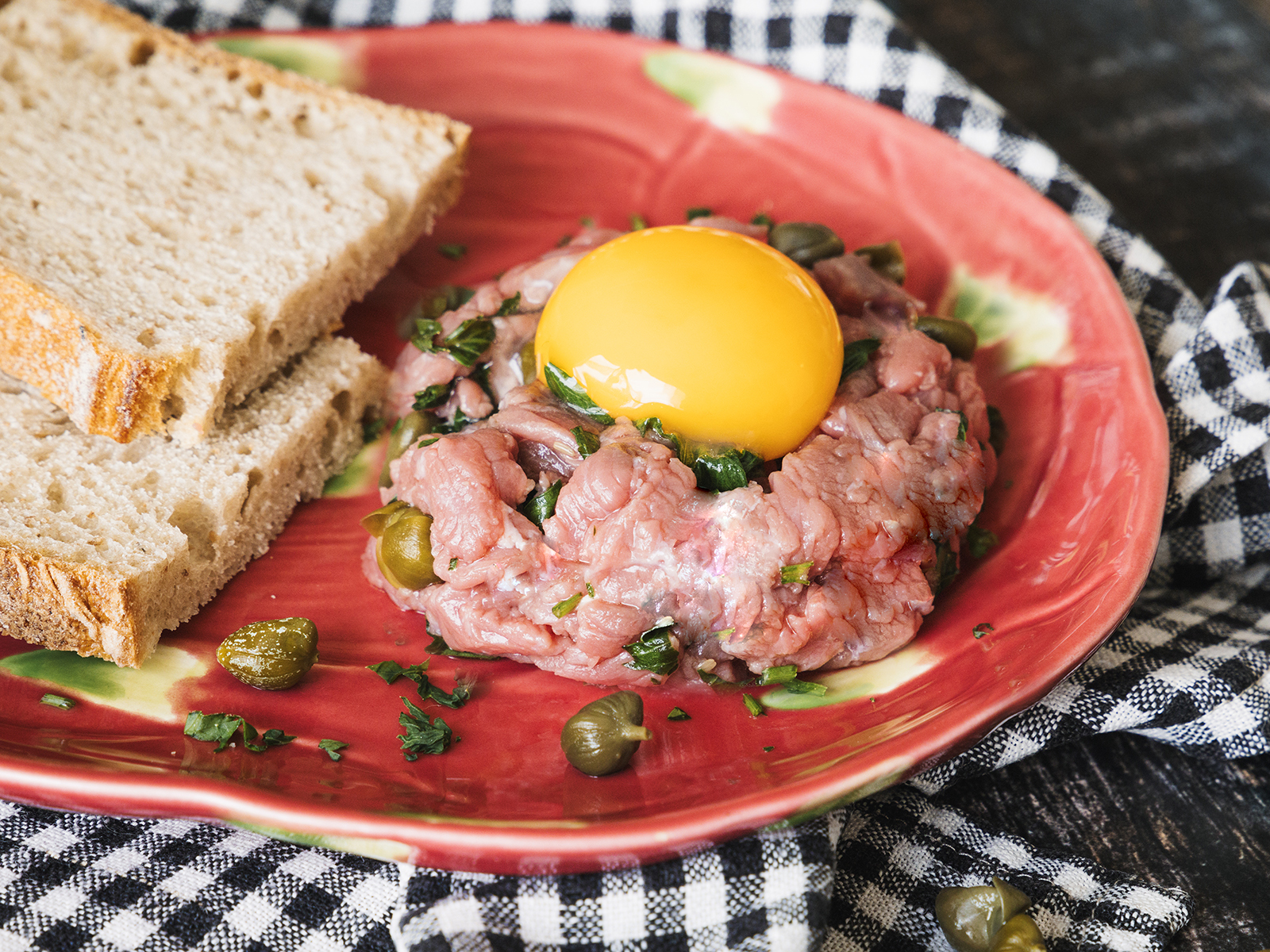Tempere com sal e pimenta e com o sumo de limão. Tempere a carne com sal.