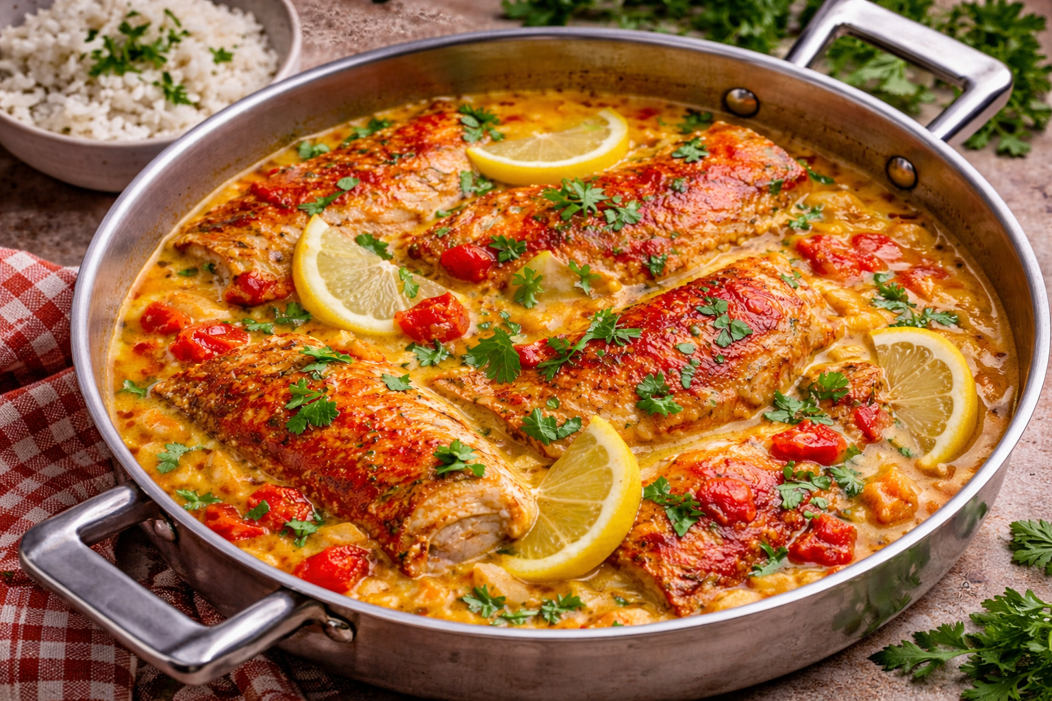 Temperar os filetes de robalo com sal e alho em pó e cozinhar numa frigideira com um fio de azeite por 2 a 3 minutos de ambos os lados.