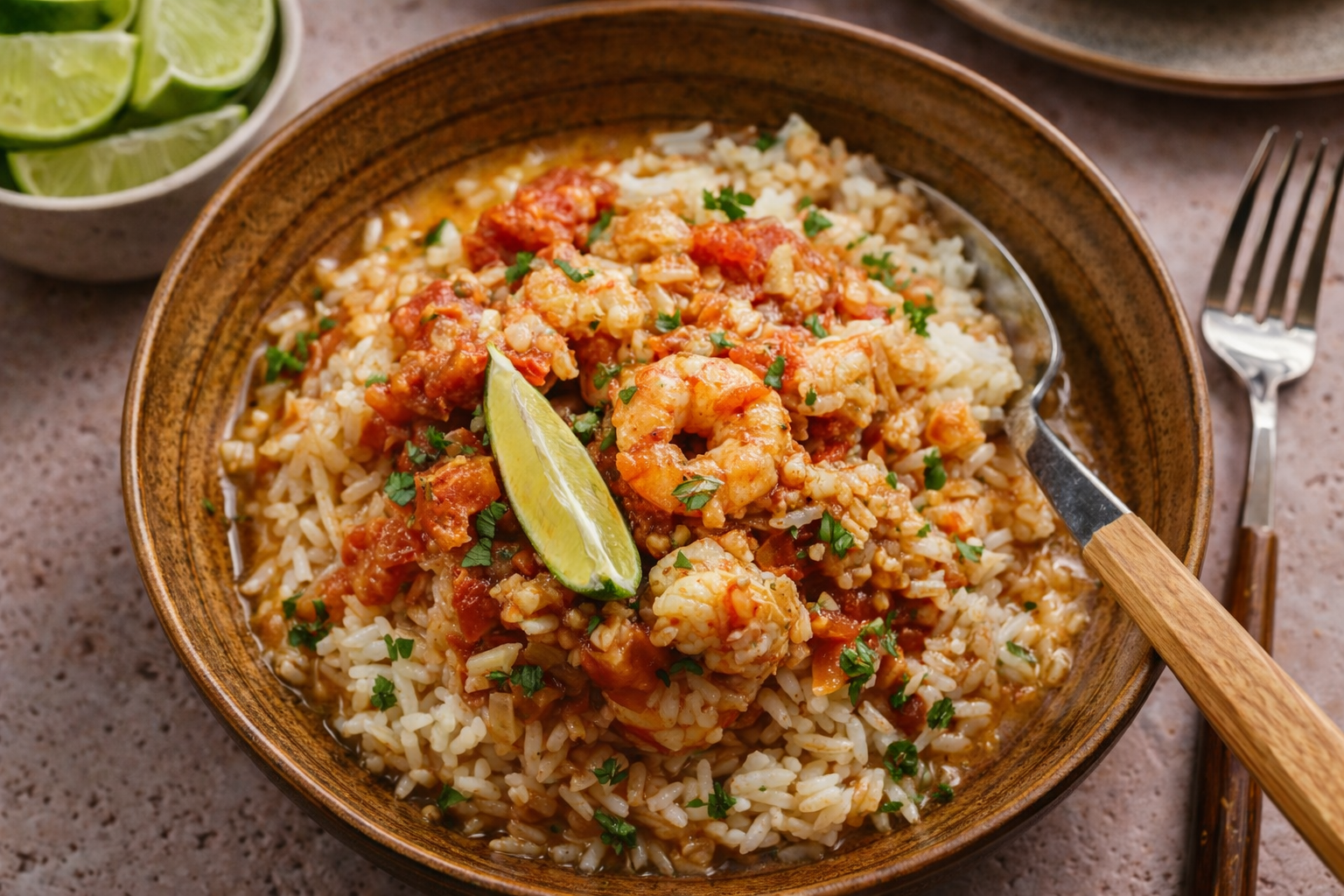 Tempere os camarões com sal e pimenta e regue com sumo de 1/2 limão.