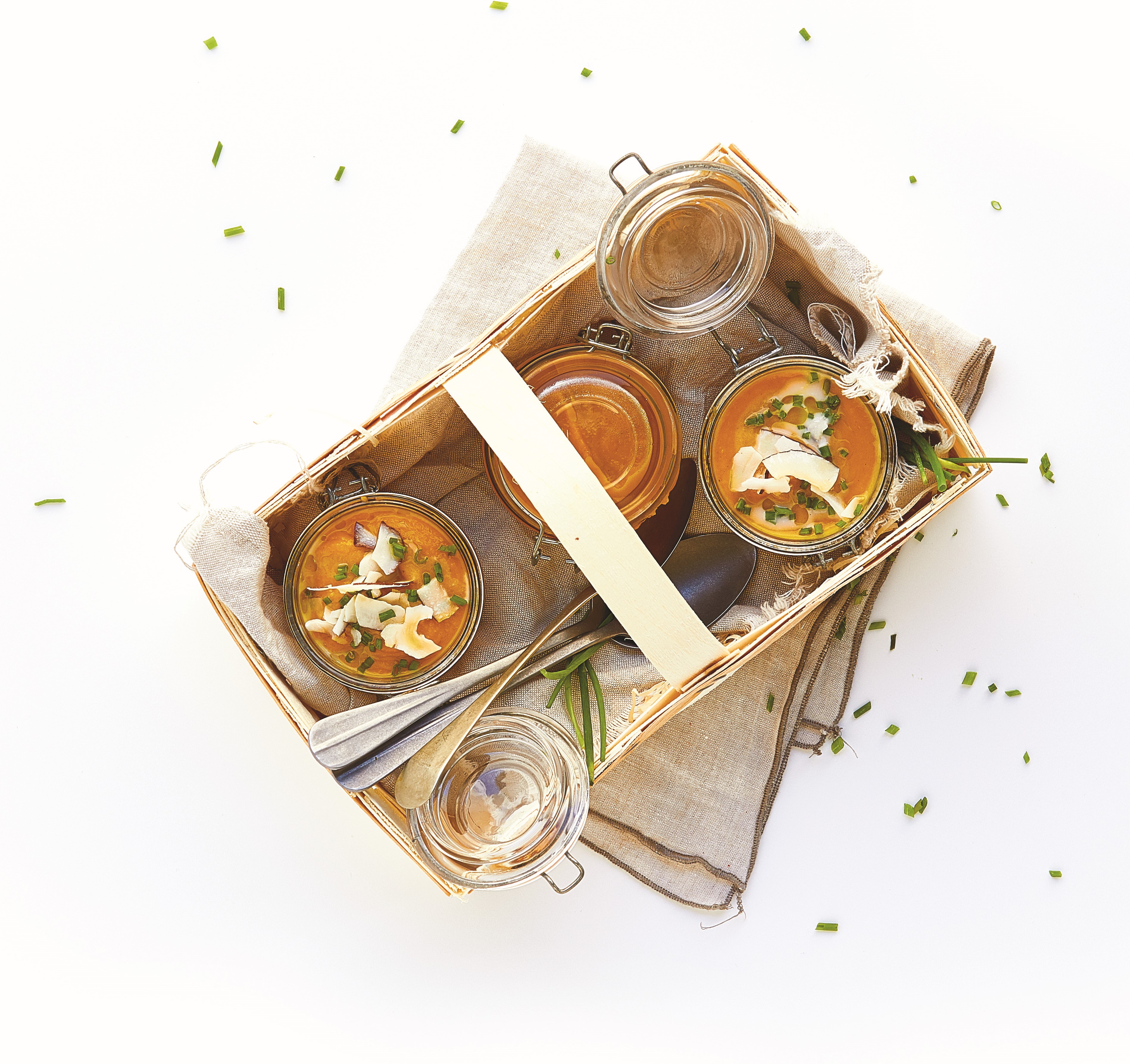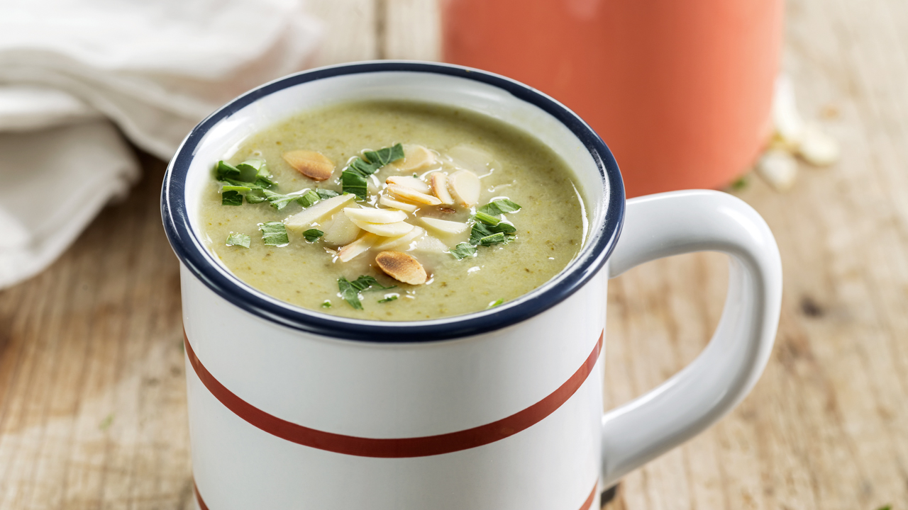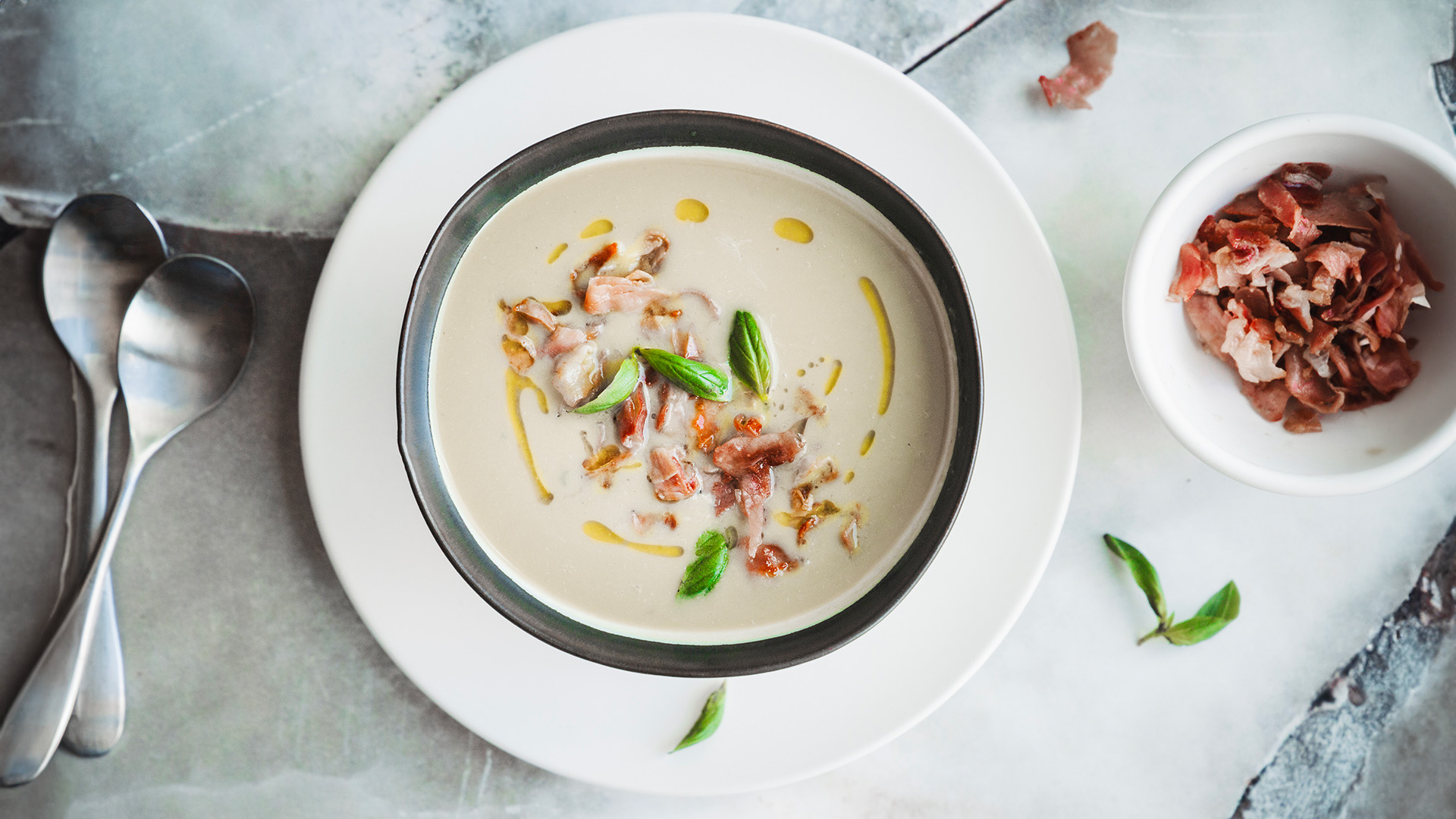 Para servir, corte o pedaço reservado de pepino e pimento vermelho em pequenos cubos e polvilhe sobre a sopa. Guarneça com folhas de manjericão e orégãos a gosto.