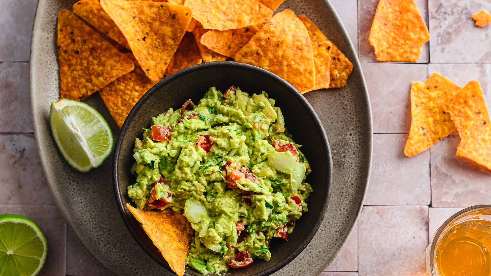 Sirva o guacamole numa taça (se quiser pode colocar no frigorifico por alguns minutos antes de servir) e disponha os nachos à volta.