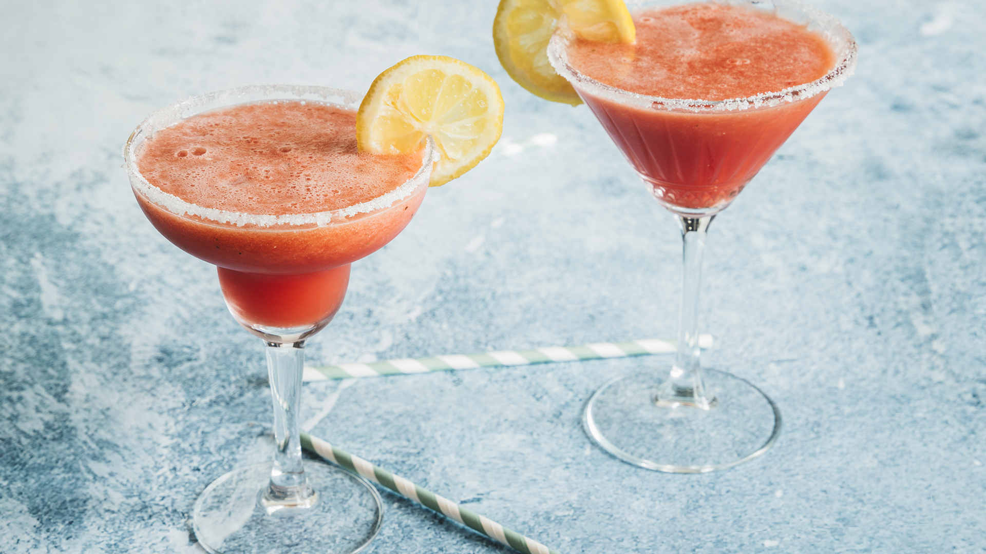 Verta o preparado para os copos e sirva as margaritas de seguida.