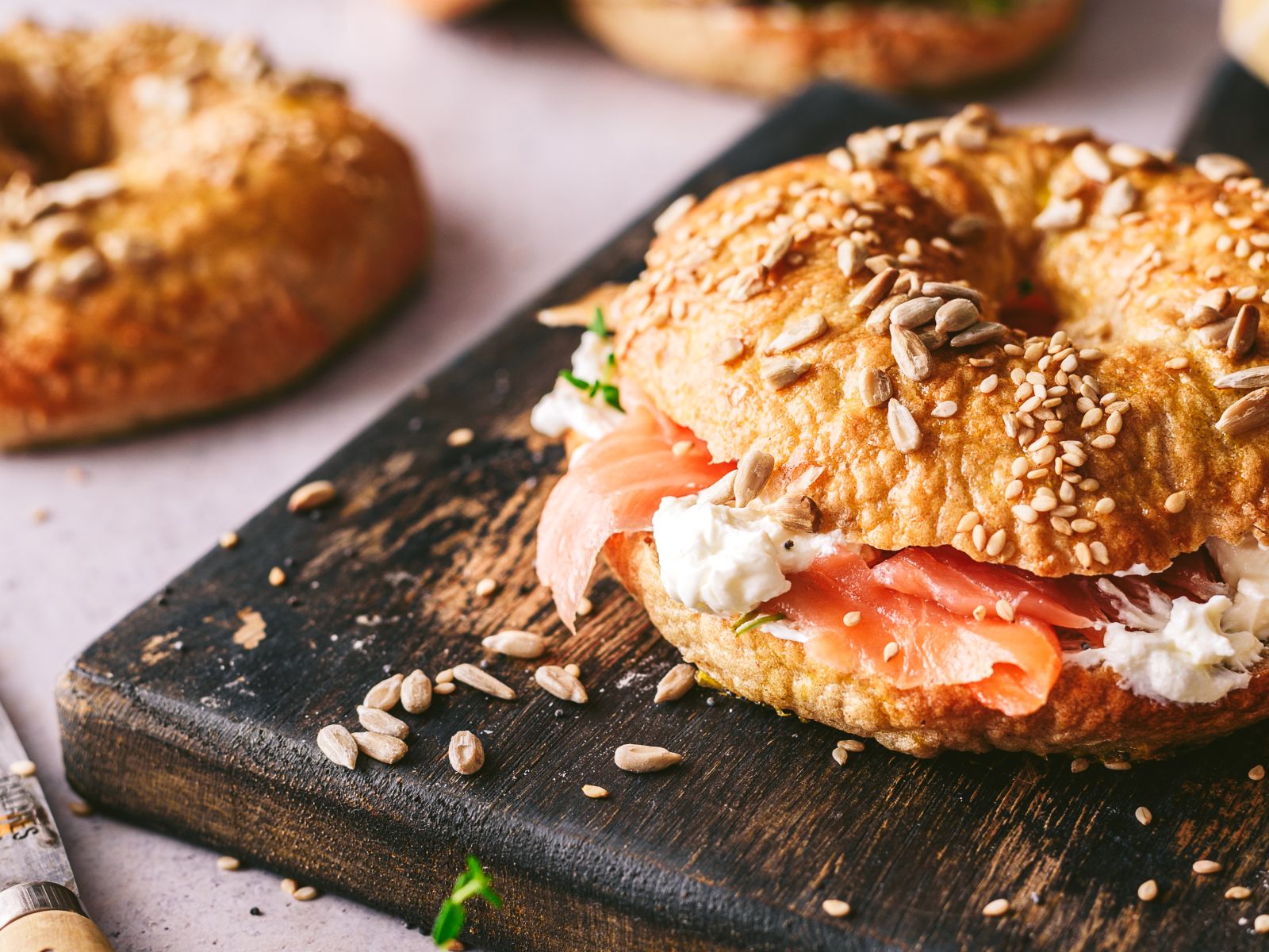 Adicionar à lista Adicionar ao plano Adicionar aos favoritos Peixe The Healthy Sins Bagels com queijo creme e salmão fumado 60 min Fácil