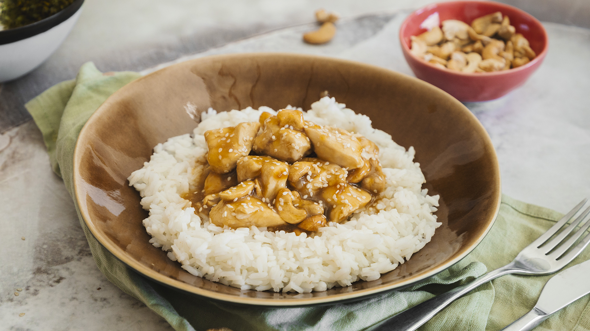 Numa frigideira quente e com um pouco de azeite, corar o frango até este ficar com um tom dourado.