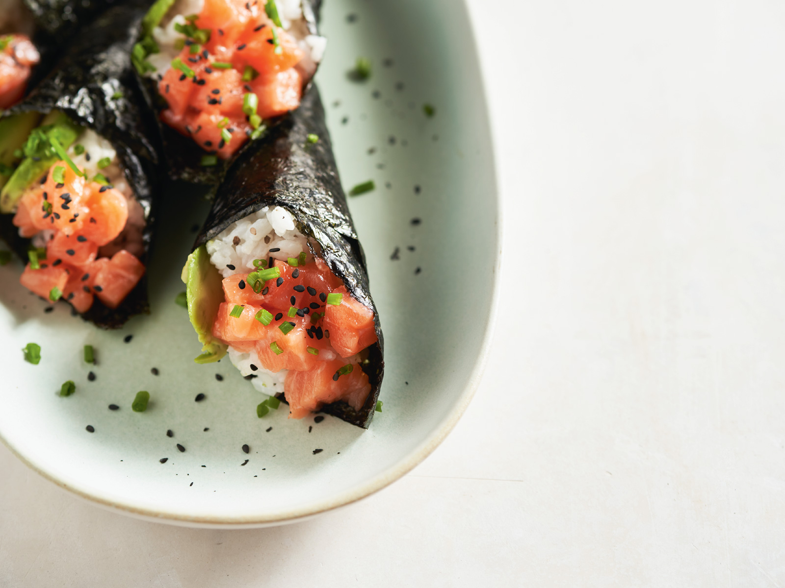 Sirva o salmão acompanhado com uma salada de abacate e manga e decore com coentros picados.