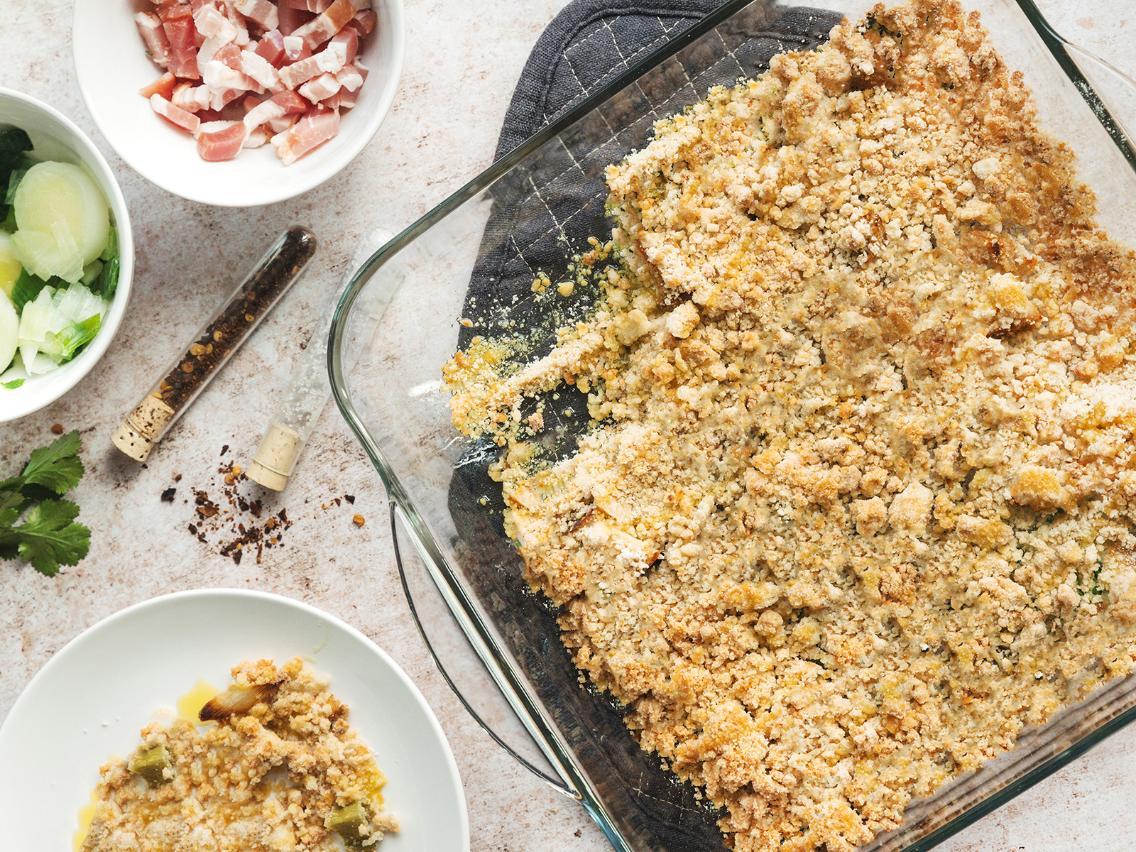 Entretanto, corte os pimentos em tiras finas e a cebola em meias-luas e salteie-as numa frigideira com um pouco de azeite.