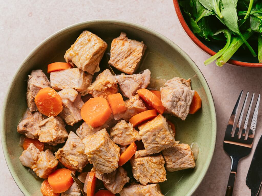 Aqueça um tacho e coloque o toucinho em primeiro lugar, e posteriormente a cebola e o alho.