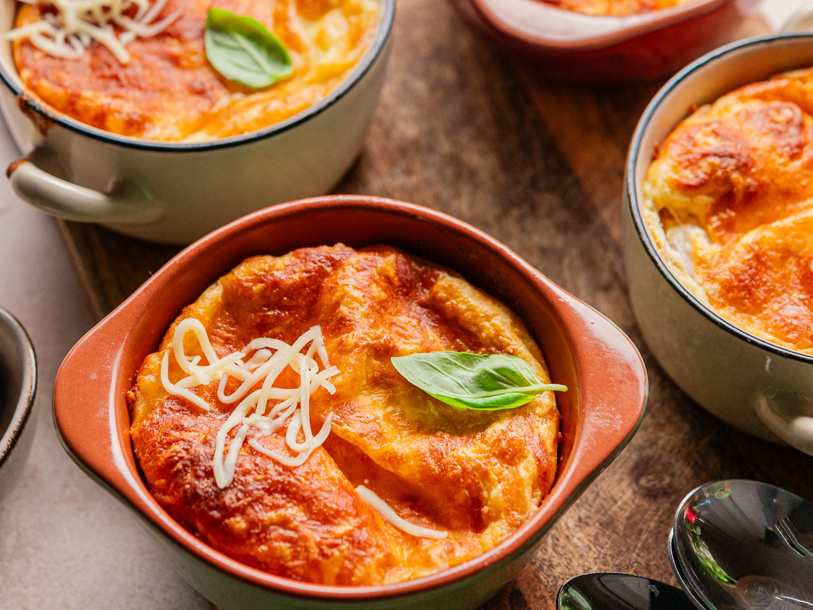 Deite o preparado nos ramequins previamente untados com manteiga, polvilhe com o restante queijo e leve a cozer em forno previamente aquecido, durante cerca de 15 minutos.