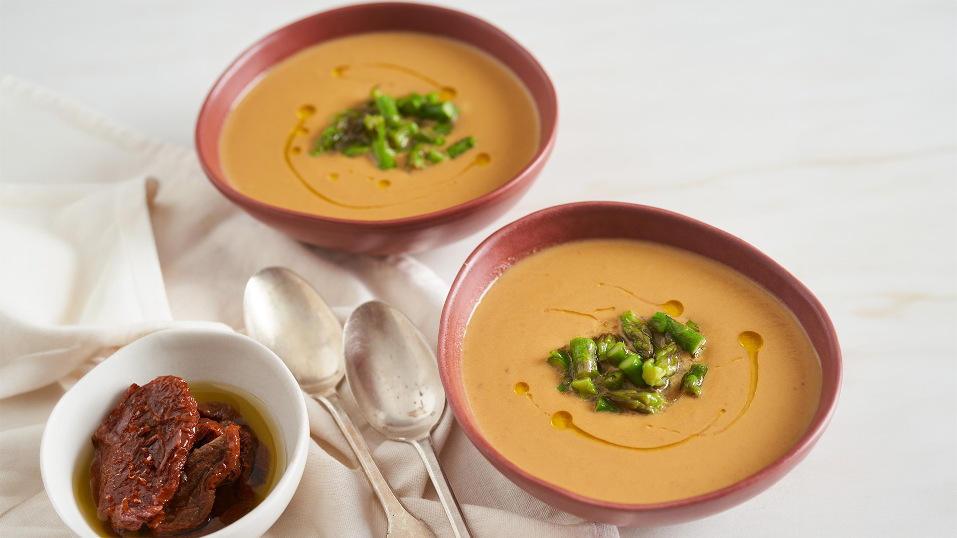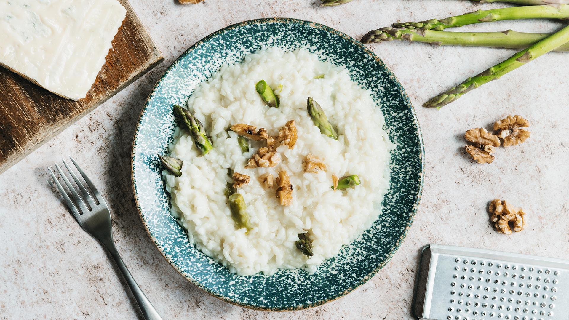 Comece por arranjar os espargos lavando bem e retirando as pontas. Disponha num tabuleiro de ir ao forno, tempere com sal e pimenta e regue com 1 fio de azeite. Leve ao forno a 180ºC por 15 a 18 minutos. Reserve.