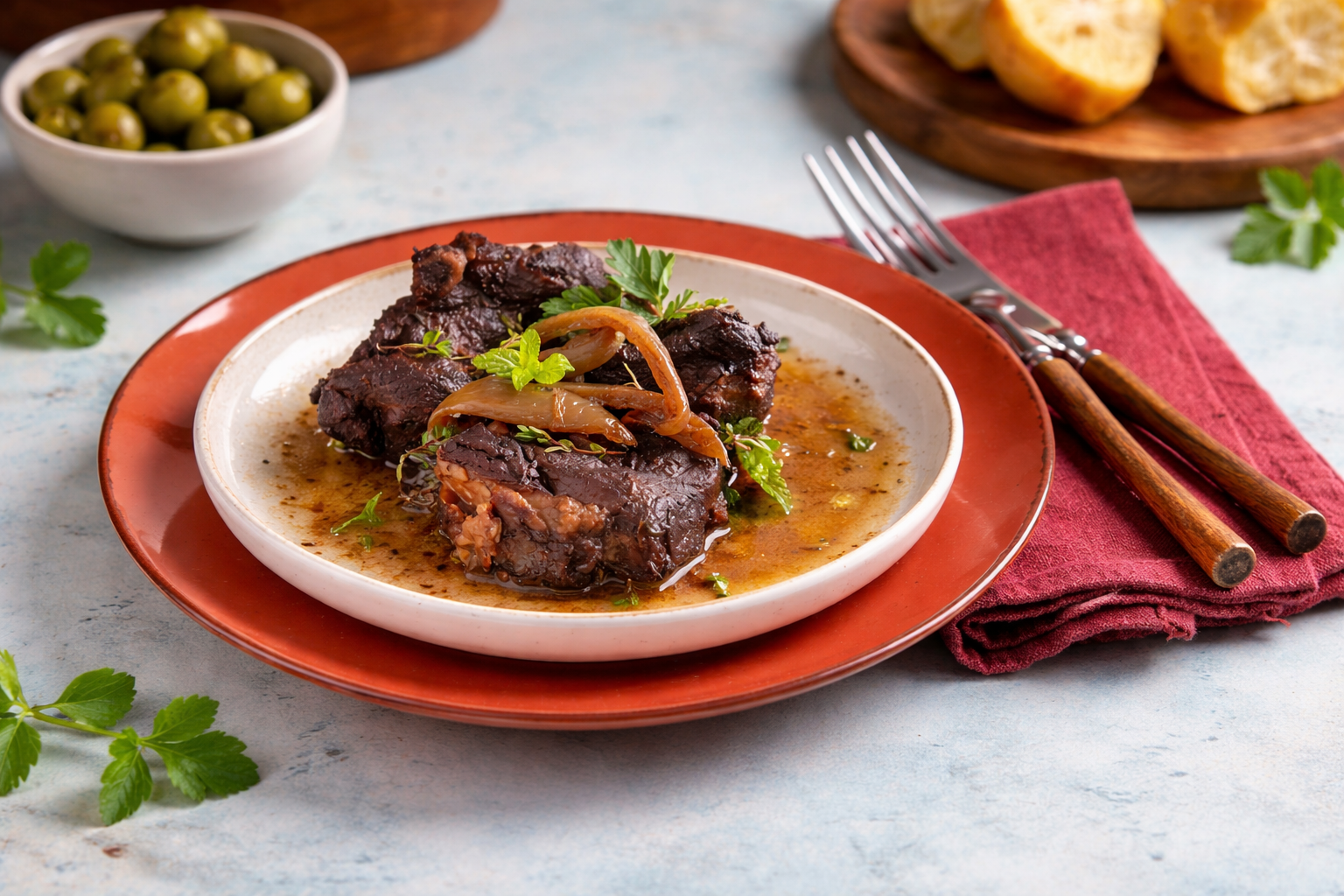 Sirva as bifanas regadas com molho no pão ou acompanhadas por batatas fritas.