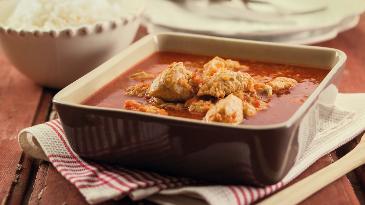 Sirva com puré de batata ou arroz branco e, se gostar, com torradas de pão. O tempo de cozedura do frango poderá variar consoante o tamanho dos pedaços: não os corte demasiado pequenos para que a carne não se desfaça ou, se for necessário, programe mais 5 minutos, à mesma velocidade e temperatura.