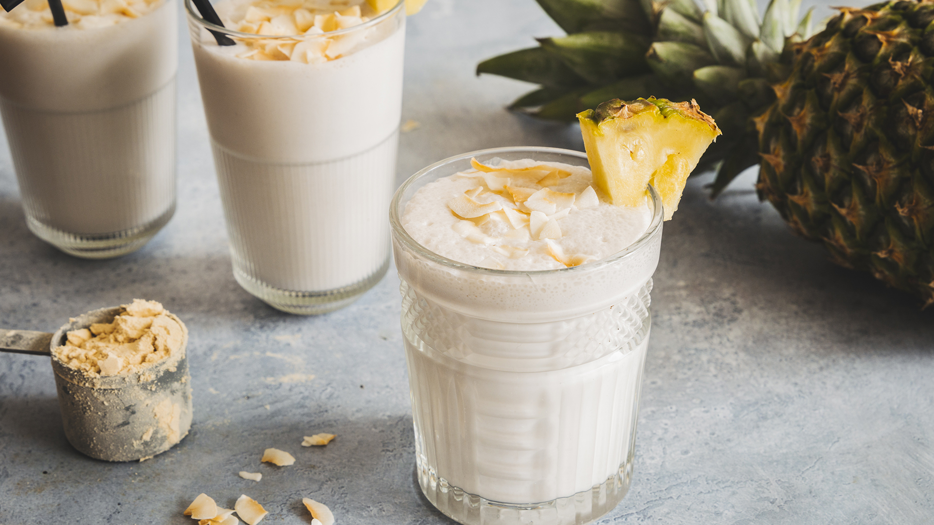 Junte o leite, a proteína whey, o miolo de noz e folhas de hortelã a gosto. Envolva com a espátula até ao fundo do copo e programe 1 minuto na velocidade 11.