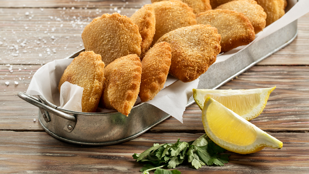 Prepare a receita de massa para rissóis: coloque no copo a água, o azeite, a manteiga e uma pitada de sal e programe 5 minutos, a 100ºC, na velocidade 2.