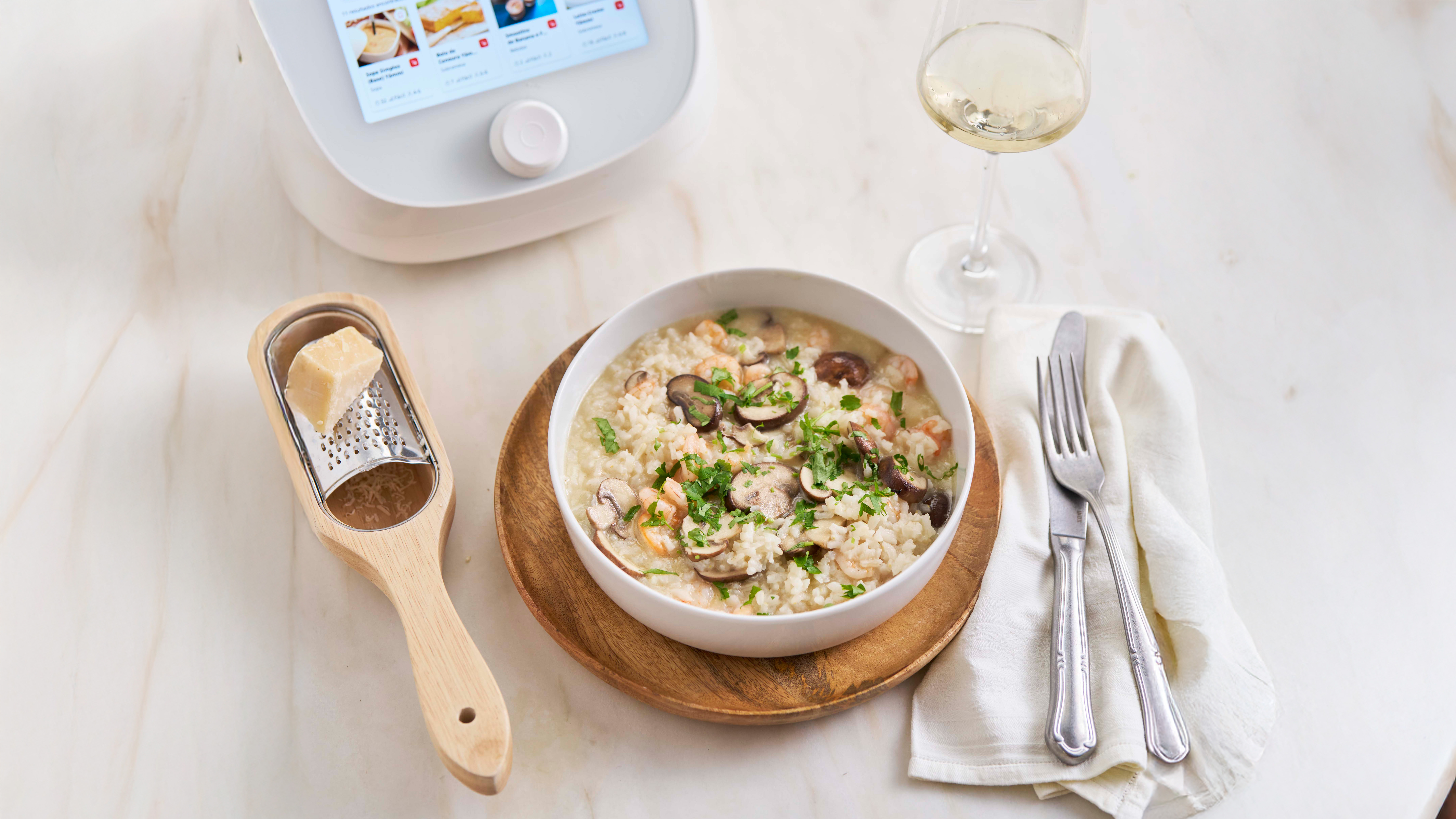 Insira o cesto dentro do copo, envolva com a espátula e programe 30 minutos na Função Vapor. Envolva novamente o arroz com a espátula, por duas vezes, durante os primeiros minutos.