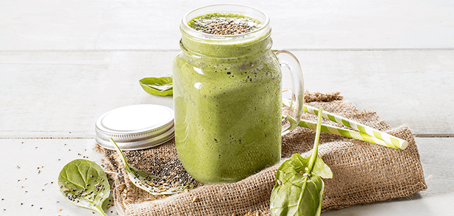 Batido de espinafres, banana e linhaça