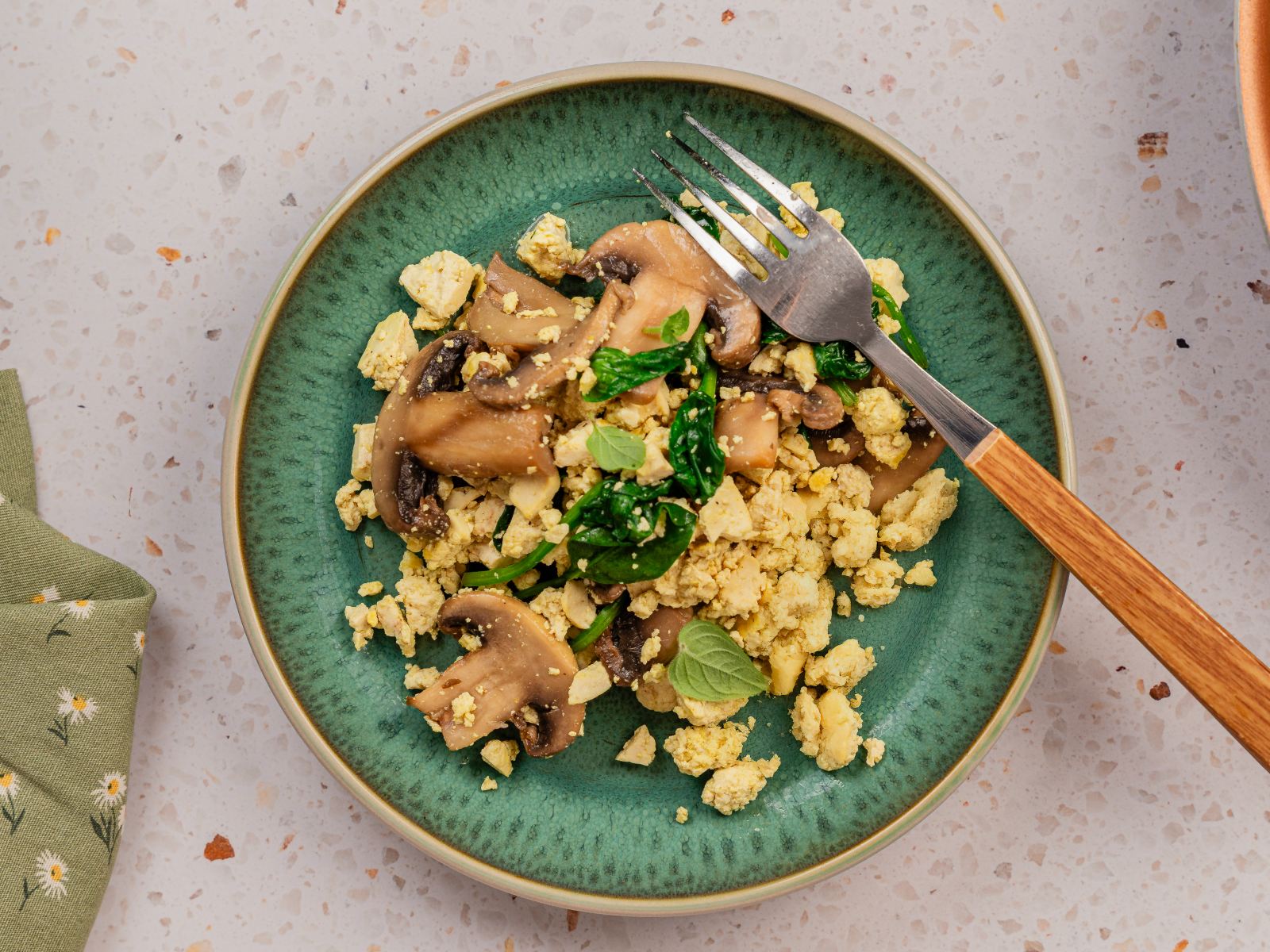 Tofu Mexido com Espinafres e Cogumelos